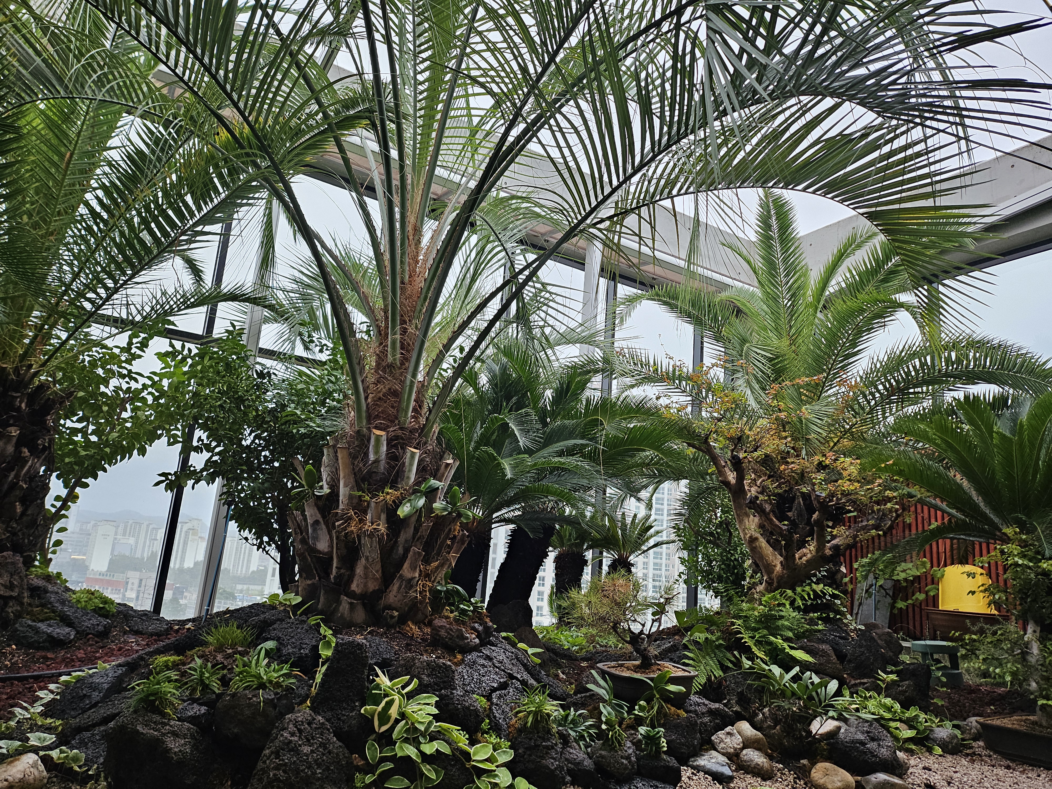 야자수와 각종 식물들이 심어져 있고, 인공 잔디가 깔려있어서 미니 정원 같은 느낌이에요. 사진 찍기에도 좋은 포토존이니 꼭 들러보세요!