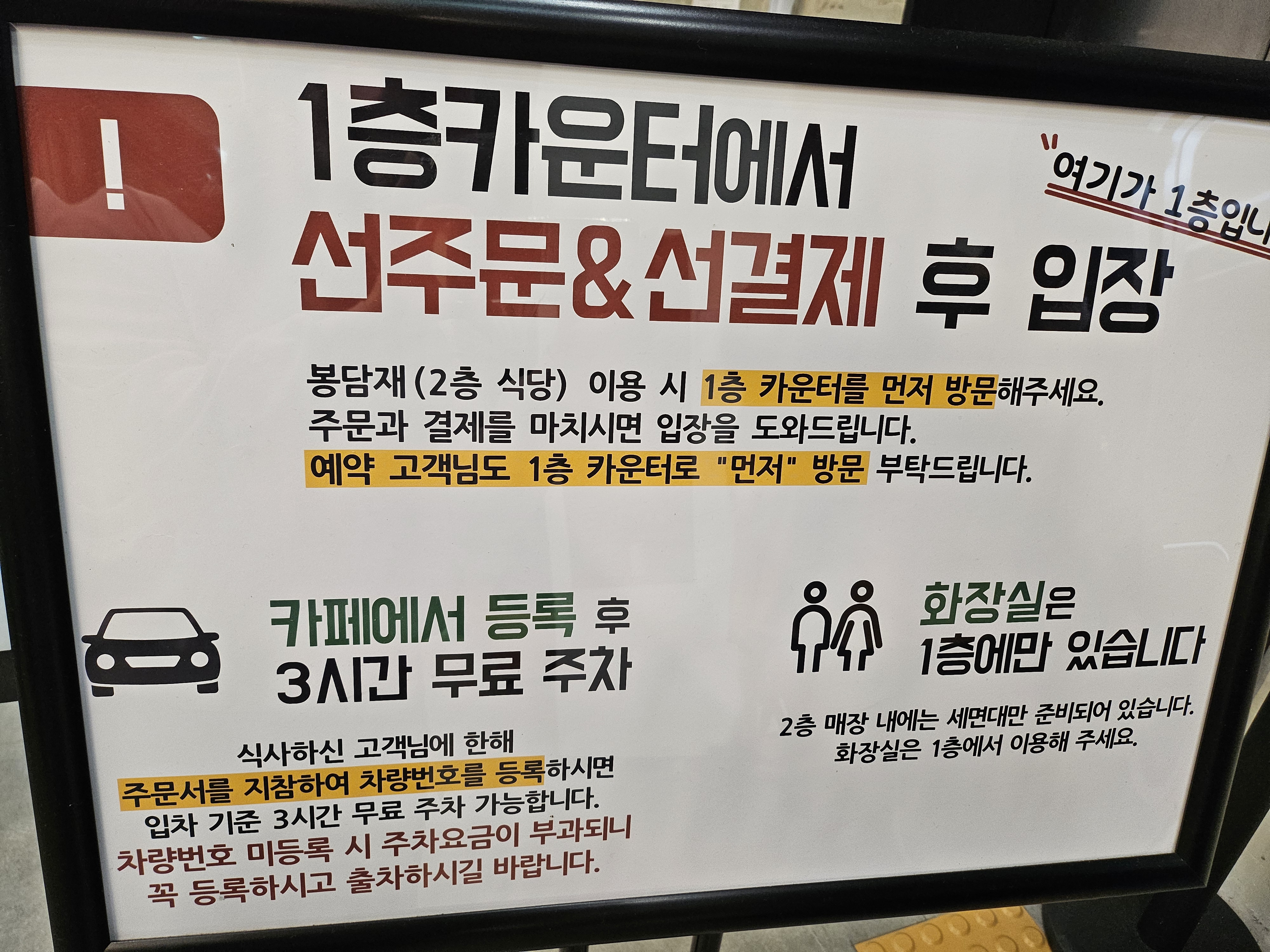 💡 Tip: 네비게이션이 주차장 출구로 안내할 수 있으니 '봉담재 주차장'으로 검색하세요!
